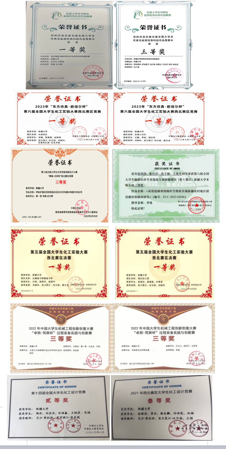 11 | 国家级大学生创新训练计划项目/页岩油加氢改制备高附加值润滑油的实验研究 | 亚力昆江·吐尔逊 | 张宸*,李林繁*,林立成*,阿衣克力木·哈山* | 202109-202212 |